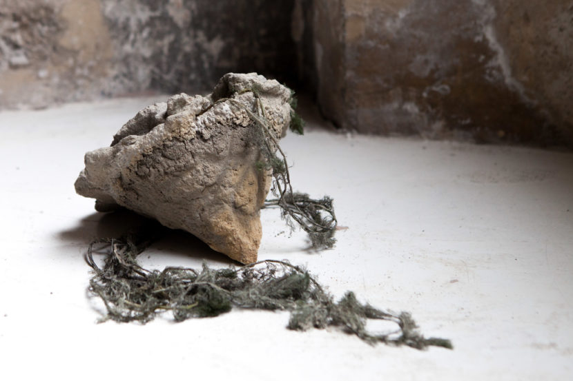 Nello spazio di alcuni giorni, assisteremo al prendere forma di una scultura di acqua e polvere di cemento: impronta del tempo che il fiume impiega per digerire l’estraneo, archeologia di un’edilizia urbana. Quando esoscheletri di cemento architettonico divengono detriti e rotolano verso gli argini del Tevere, l’acqua si rende culla di un divenire oggetto in mezzo al fiume. Temporaneamente o per sempre.
